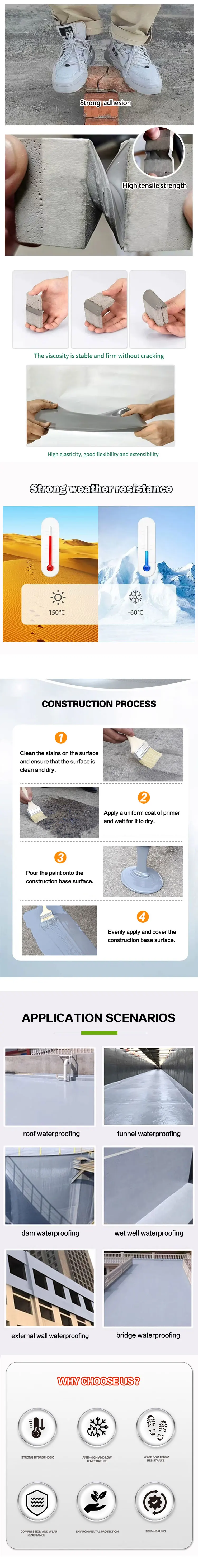 Toepassingen in de woningbouw omvatten reparaties aan platte daken, waterdicht maken van kelders en het afdichten van buitenmuren. Aannemers waarderen de gemakkelijke aanbrengbaarheid en betrouwbare prestaties van het materiaal bij het oplossen van waterdichtheidsproblemen van huiseigenaren. De eencomponentensamenstelling elimineert mengfouten en vermindert de complexiteit van de aanbrenging, waardoor het ideaal is voor zowel professionele aannemers als ervaren onderhoudspersoneel.